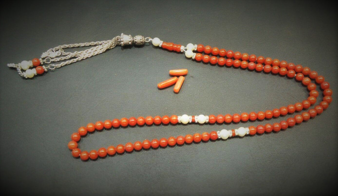 سبحة مرجان أحمر وبعض أحجار اللؤلؤ
